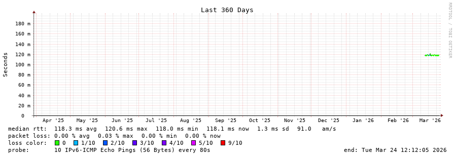 traceroute to 2620:119:35::35 (2620:119:35::35), 30 hops max, 80 byte packets - Generated at 2026-03-24 12:00:01