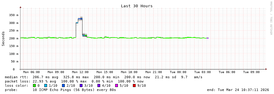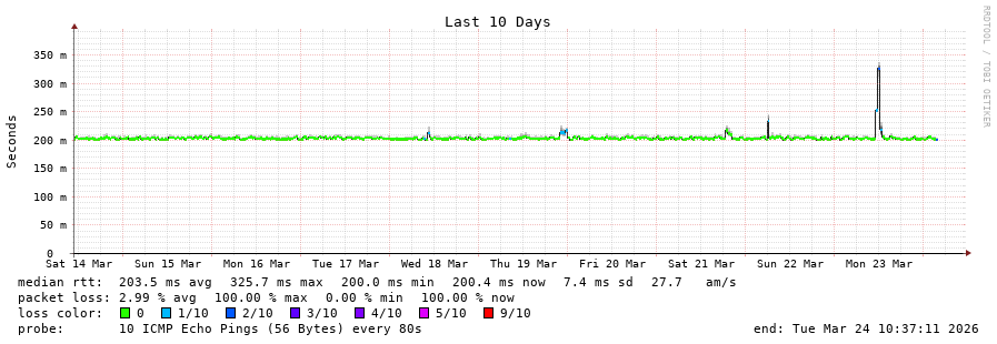 8 > Bundle-Ether10157.sydp-core03.sydney.telstraglobal.net (202.84.141.145) [AS4637] 125.257ms 125.339ms 124.051ms