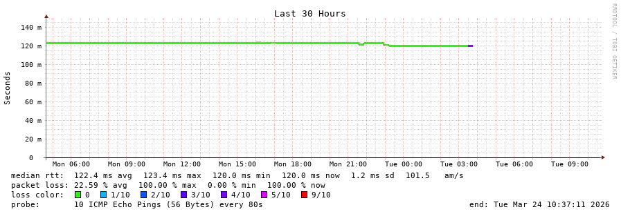 10 > unknown.telstraglobal.net (202.84.207.182) [AS4637] 118.609ms 118.510ms 118.571ms