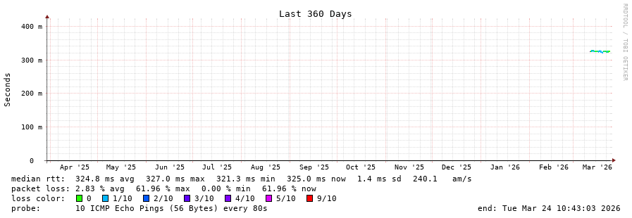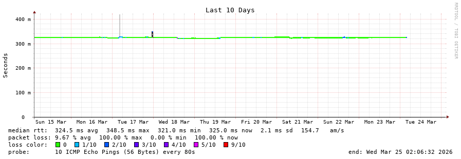 25 > atlas-probe.ip6.fccn.pt (193.136.2.26) [AS1930] 324.824ms 324.737ms 324.811ms