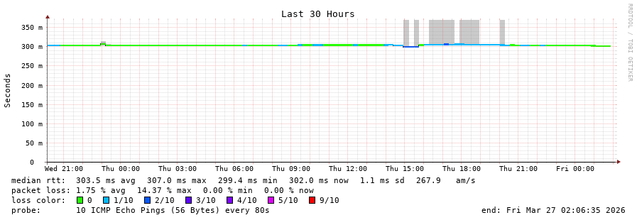 19 > 161.53.120.254 (161.53.120.254) [AS2108] 302.917ms 301.928ms 301.972ms