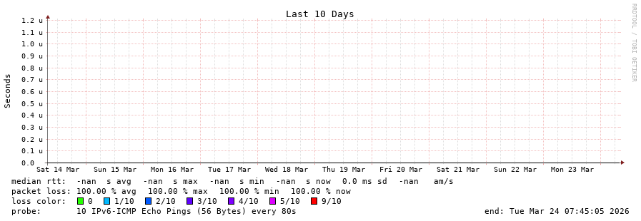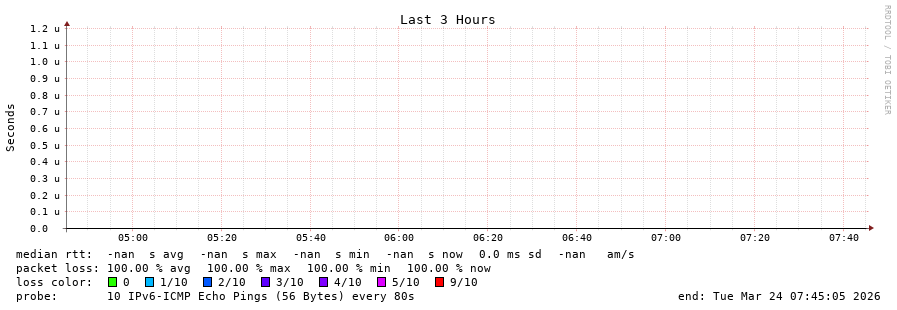 traceroute to fd69:226f:3a3c::2 (fd69:226f:3a3c::2), 30 hops max, 80 byte packets - Generated at 2026-03-24 07:30:01 3 > 4 > 5 > 6 > 7 > 8 > 9 > 10 > 11 > 12 > 13 > 14 > 15 > 16 > 17 > 18 > 19 > 20 > 21 > 22 > 23 > 24 > 25 > 26 > 27 > 28 > 29 > 30 >