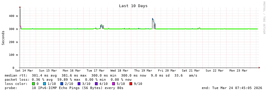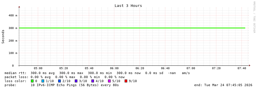7 > 2001:1900:5:2:2::d1e (2001:1900:5:2:2::d1e) [*] 300.361ms 300.285ms 300.288ms