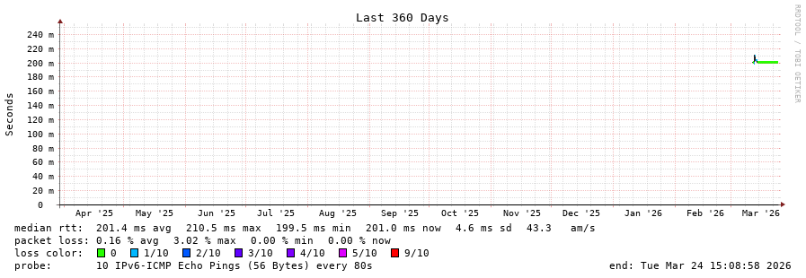 traceroute to 2604:2dc0:101:100::197c (2604:2dc0:101:100::197c), 30 hops max, 80 byte packets - Generated at 2026-03-24 15:00:01