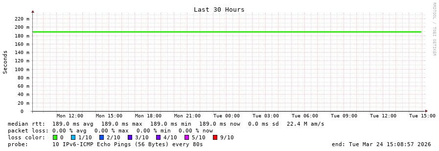 15 > yto1-yyz01.smokeping.ovh.net (2607:5300:300:1f00::) [AS16276] 188.941ms 188.935ms 188.964ms