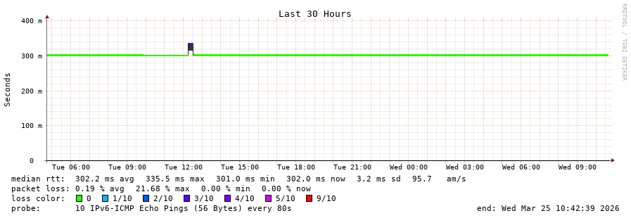 14 > 2001:978:2:33::e:9 (2001:978:2:33::e:9) [AS174] 305.411ms 305.046ms 305.088ms