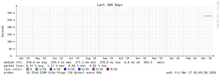 15 > 2001:978:2:4c::58:f (2001:978:2:4c::58:f) [AS174] 280.603ms 280.832ms 280.994ms