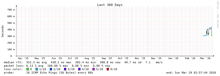13 > 185.70.203.57 (185.70.203.57) [AS6762] 308.943ms 308.785ms 308.663ms