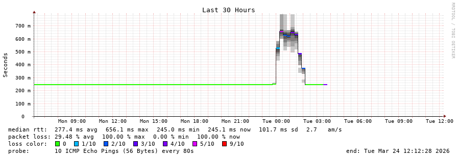 12 > 190.103.31.77 (190.103.31.77) [AS264628] 245.624ms 245.407ms 245.525ms