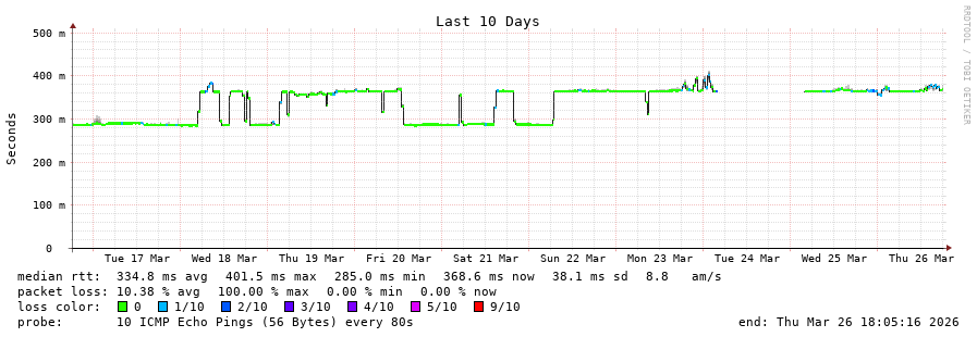 10 > 5.178.43.151 (5.178.43.151) [AS6762] 349.352ms 349.420ms 349.477ms