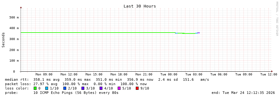 10 > 94.142.127.43 (94.142.127.43) [AS12956] 350.895ms 350.837ms 350.871ms