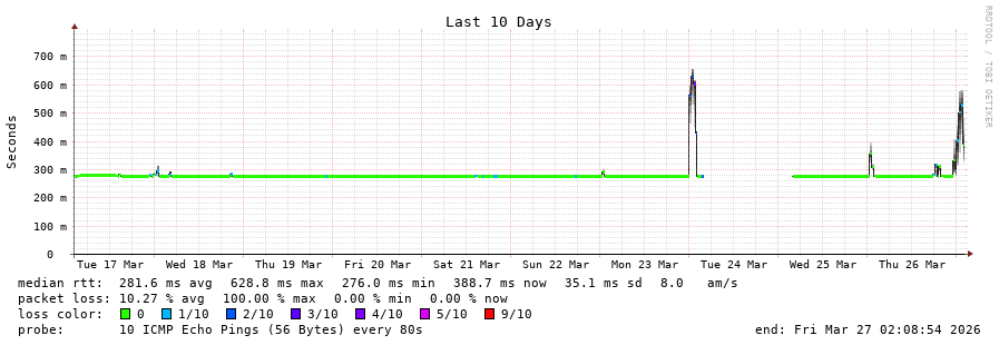 12 > 200.87.100.1 (200.87.100.1) [AS6568] 276.090ms 276.092ms 276.080ms