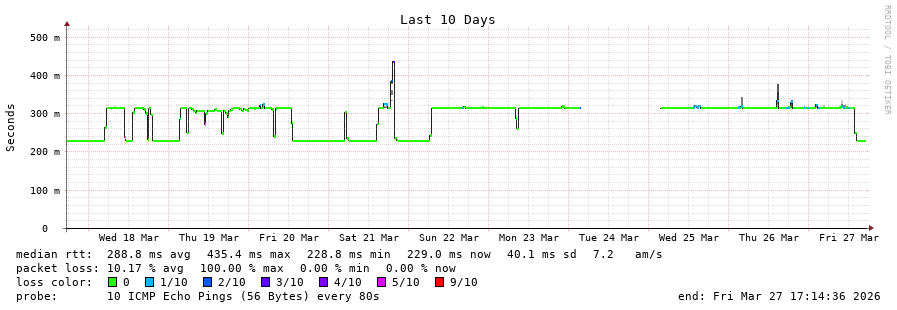 10 > 94.142.127.43 (94.142.127.43) [AS12956] 276.164ms 275.988ms 276.193ms